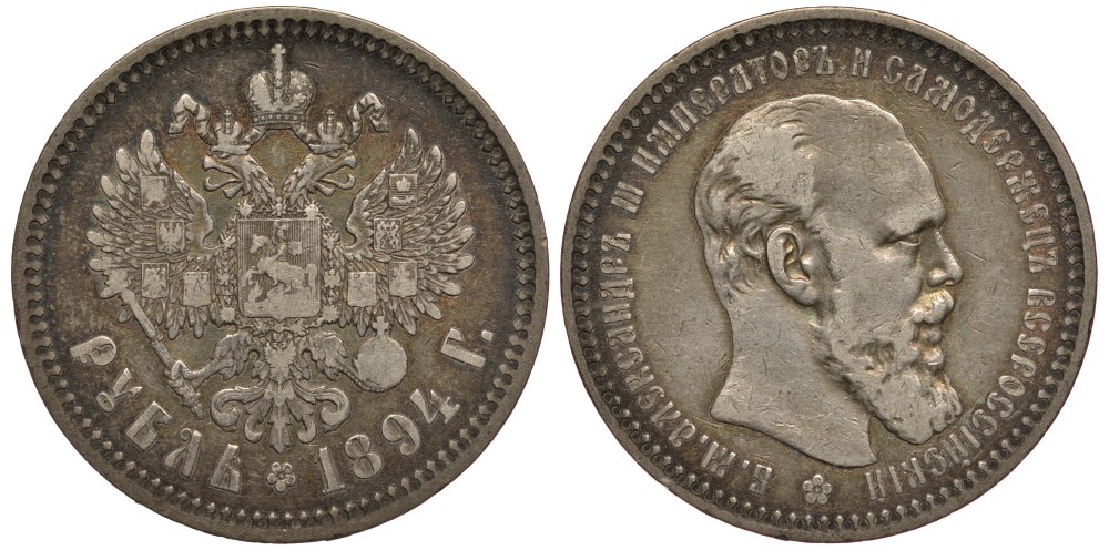 Россия 1 рубль 1894 АГ, Александр III (1881-1894) Биткин 78, KM 46 серебро 00-000-00