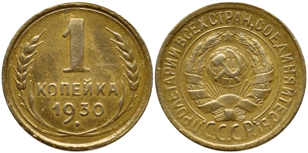 СССР 1 КОПЕЙКА 1930 Федорин 18, запятая приспущена KM 91 алюминиевая бронза 417-311