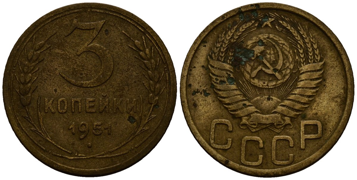 СССР 3 копейки 1951 Федорин 108 алюминиевая бронза 4176-923