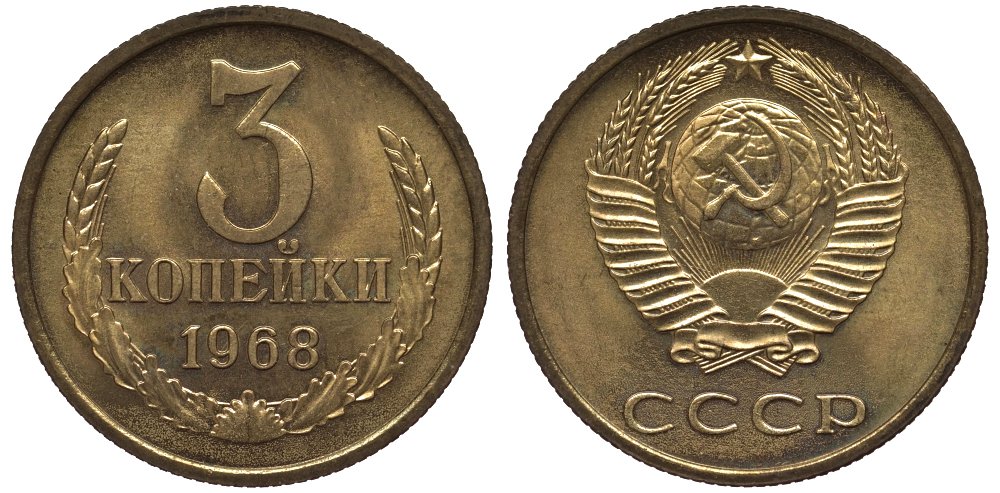 СССР 3 копейки 1968 из набора Федорин 152 алюминиевая бронза UNC 417-132