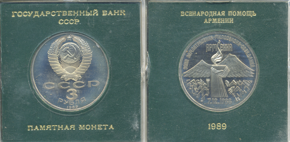 ---СССР 3 рубля 1989 Армения - землетрясение 07.12.1988, в родной коробочке KM 234 медно-никель PROOF 06-059-15НовинкиАнтичность и раннее СредневековьеМонеты - ГерманияМонеты - ЕвропаМонеты - Австралия и ОкеанияМонеты - АзияМонеты - АмерикаМонеты - АфрикаМонеты - Россия, СССР, страны СНГ и БалтииБанкнотыАксессуары, ЛитератураОткрытки, карточкиАкции, облигацииЖетоны, Медали, ЗнакиМаркиКартины, декоративно-прикладное искусство