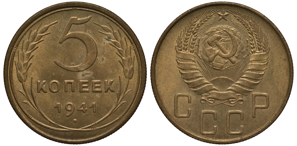---СССР 5 копеек 1941 KM 108 алюминиевая бронза UNC 00-802-27НовинкиАнтичность и раннее СредневековьеМонеты - ГерманияМонеты - ЕвропаМонеты - Австралия и ОкеанияМонеты - АзияМонеты - АмерикаМонеты - АфрикаМонеты - Россия, СССР, страны СНГ и БалтииБанкнотыАксессуары, ЛитератураОткрытки, карточкиАкции, облигацииЖетоны, Медали, ЗнакиМаркиКартины, декоративно-прикладное искусство