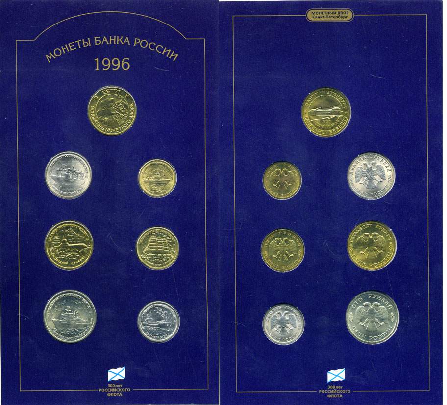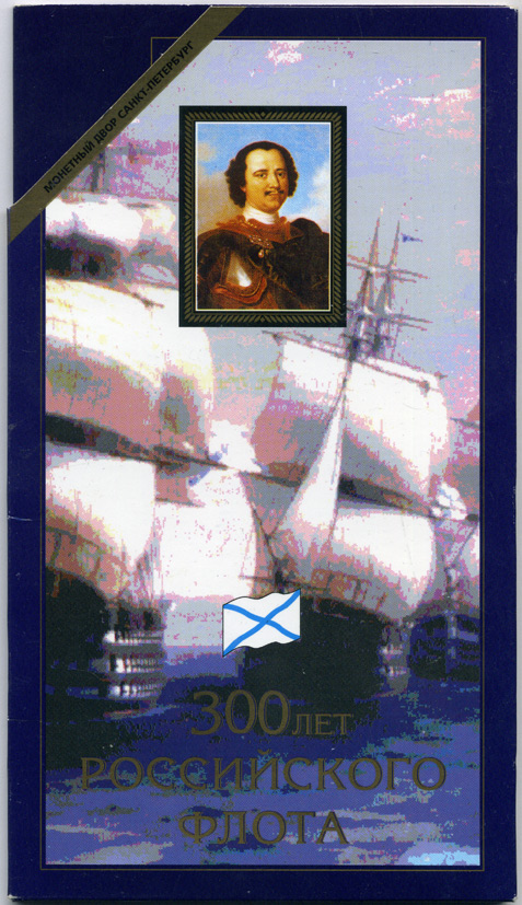Россия набор из 6 монет + жетон мондвора 1996 300 лет Российского флота, в оригинальном буклете KM MS39 UNC 7-5-1-26