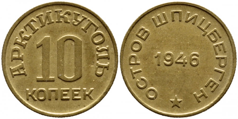 Шпицберген 10 копеек 1946 тираж 50000 экз, № 1.1 ПО ФРОЛОВУ KM Tn1 алюминиевая бронза 00-814-56