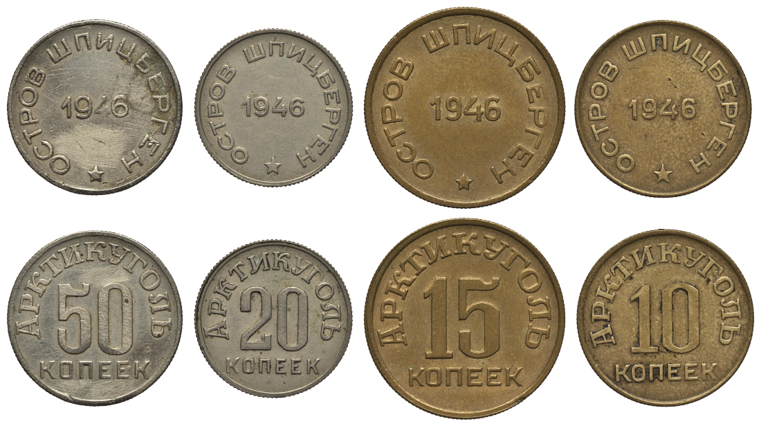 -----Арктикуголь, остров Шпицберген лот из 4 монет 10, 15, 20 и 50 копеек 1946 KM Tn1, Tn2, Tn3, Tn4 417-241