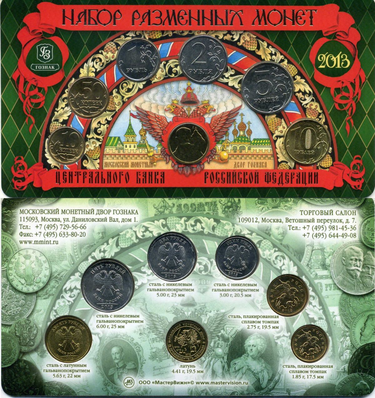 Россия набор разменных монет центрального банка Российской Федерации из 6 монет (10 и 50 копеек; 1, 2, 5 и 10 рублей) и 1 жетон 2013 жетон московского монетного двора - сто лет с 300-летия дома романовых UNC 3-6-3-14