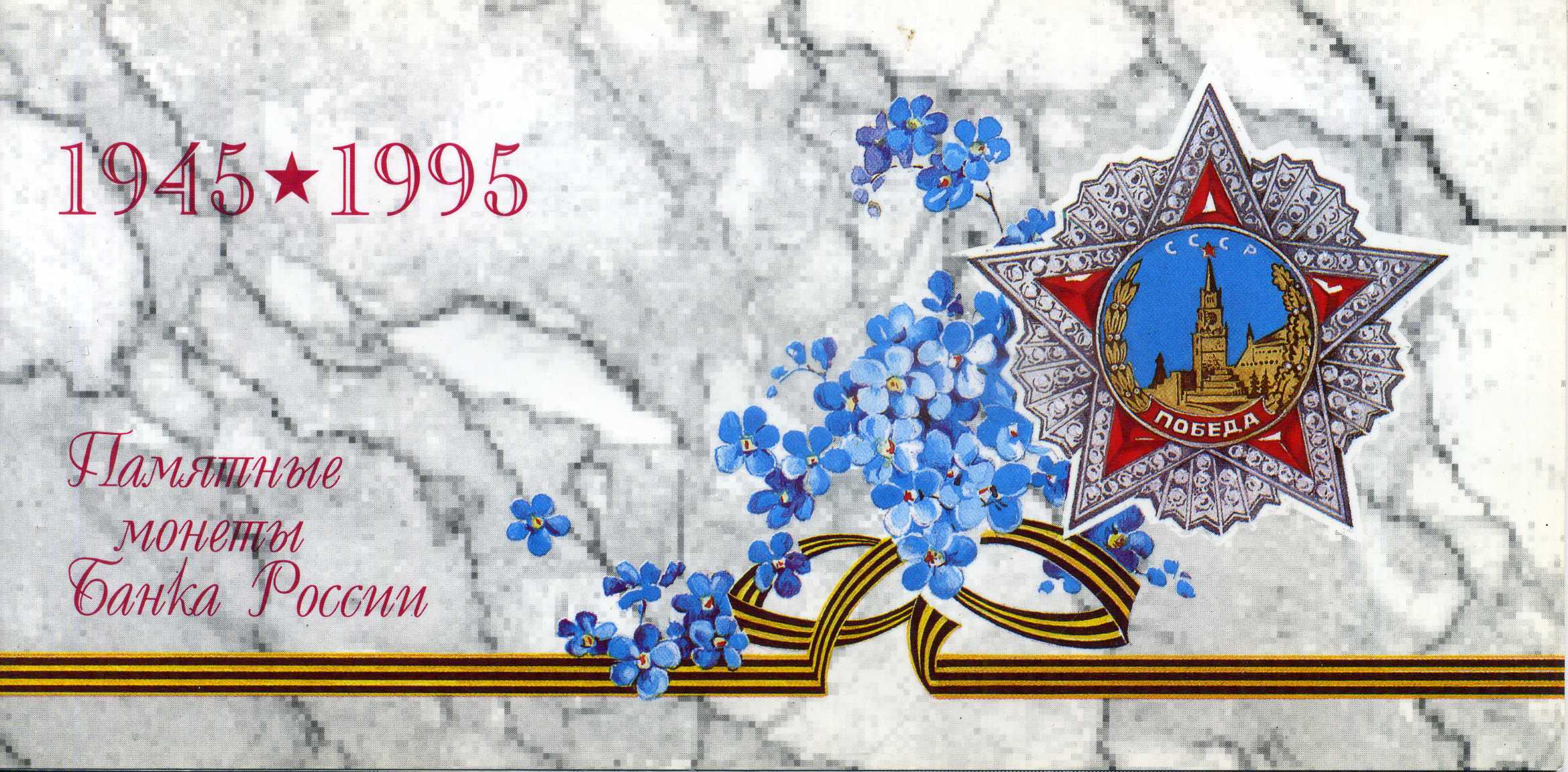 Россия набор из 6 памятных монеты банка России (1, 5, 10, 20, 50 и 100 рублей) и жетона Санкт-Петербурского монетного двора 1995 памятные монеты банка России, посвященных 50 лет великой победы в Великой отечественной войне (1941-1945), в оригинальном подарочном буклете KM 399, 400, 401, 402, 403, 404 медно-никель и латунь UNC