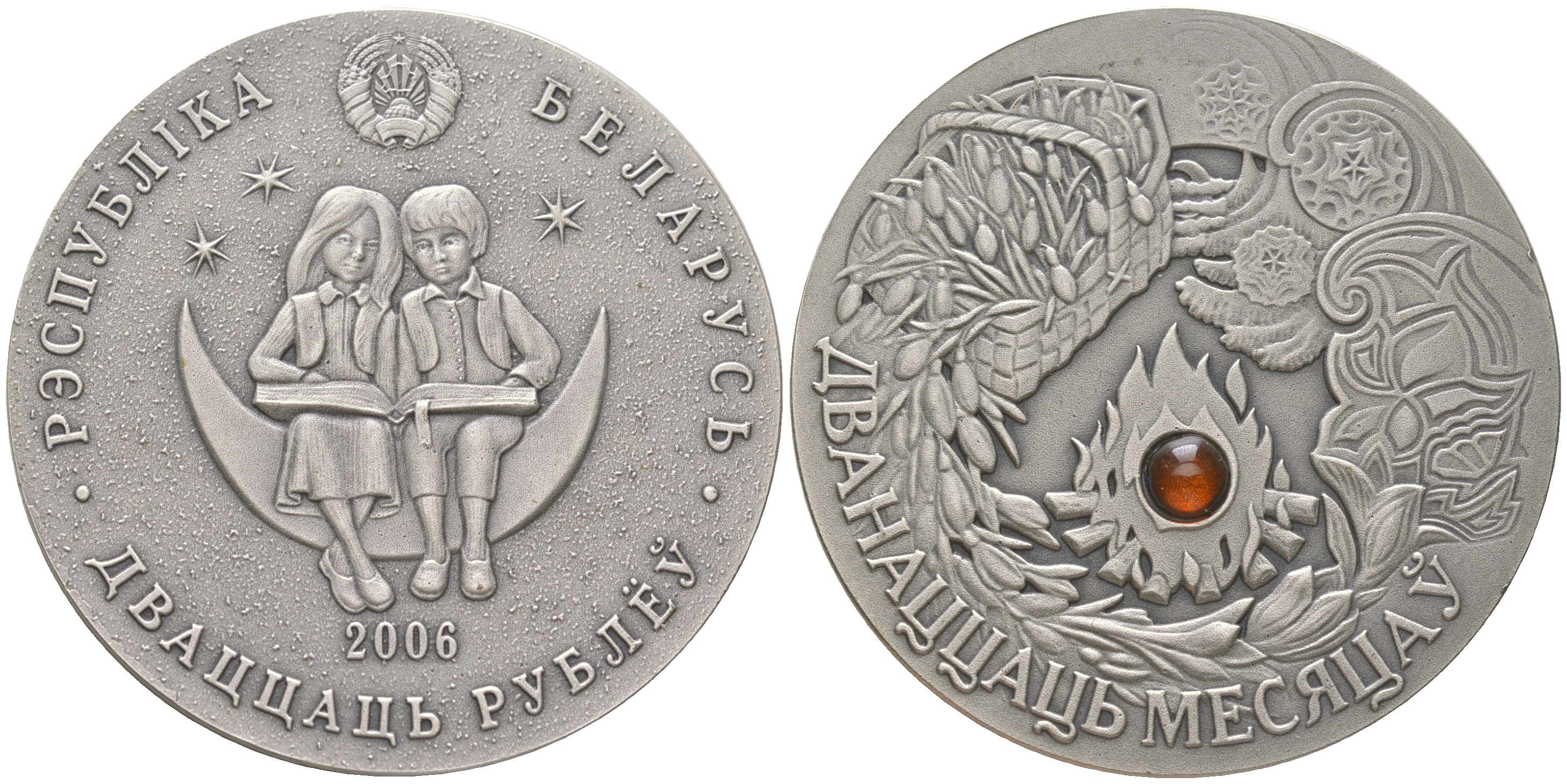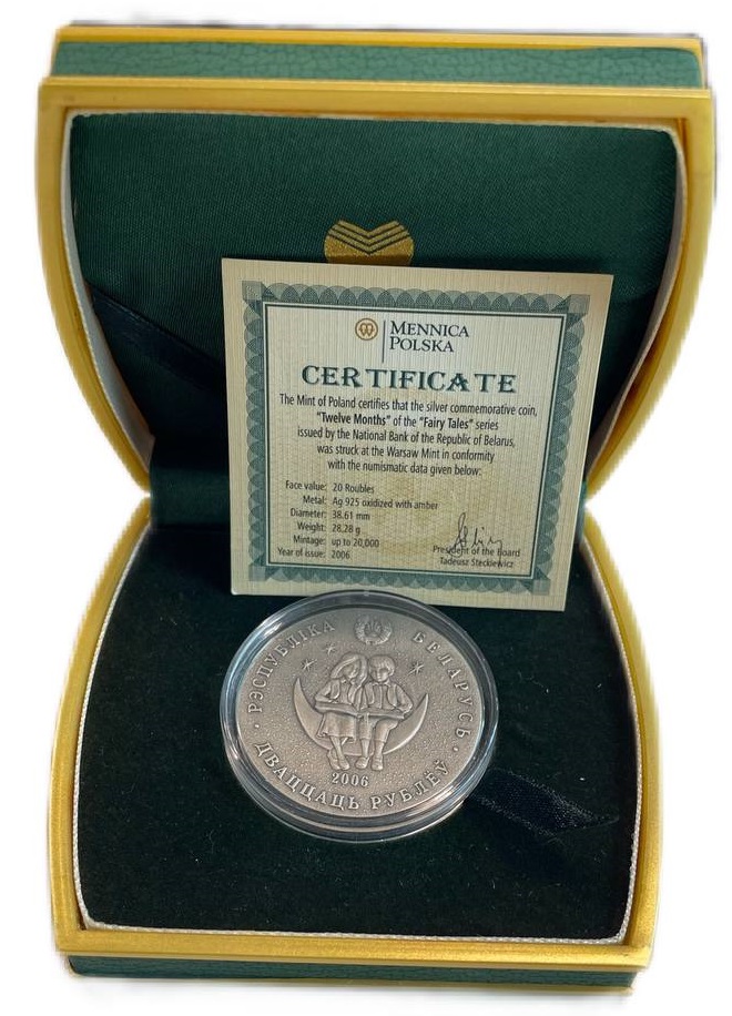 Беларусь 20 рублей 2006 Сказки народов мира - Двенадцать месяцев, в оригинальной коробке с сертификатом KM 148 серебро BU 3-4-4-14
