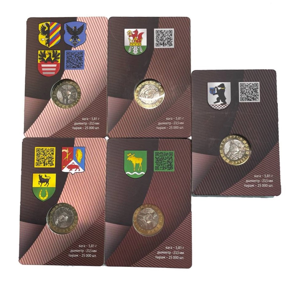 Беларусь набор из 5 монет номиналом 2 рубля 2023 животный мир на гербах городов Беларуси KM NEW биметалл UNC 3-4-7-07
