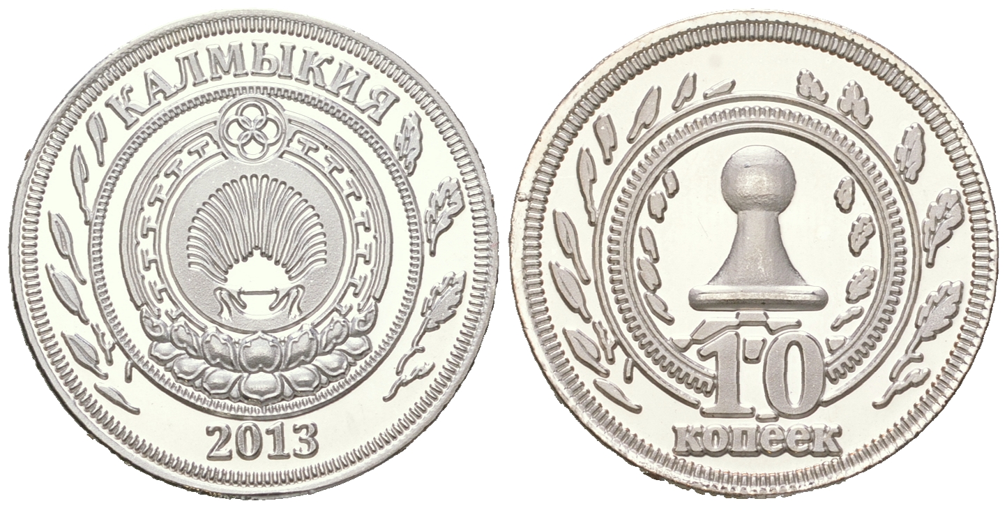 -----Калмыкия набор из 7 монет 2013 10, 25, 50 копеек, 1, 3, 5, 10 рублей, шахматные фигуры KM NEW UNC N2-07