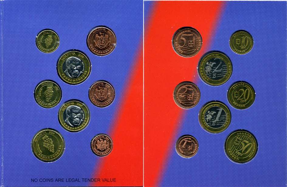 Молдавия набор из 8 монет 2004 европробники, в оригинальном картонном буклете, тираж 7000 экз. 5-6-3-37