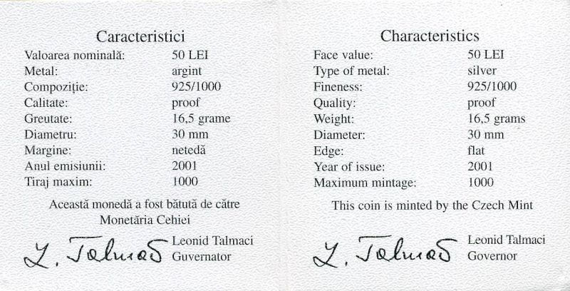 Молдова 50 лей 2001 125 лет со дня рождения Константин Бранкузи, тираж 1000 экземпляров, оригинальная коробка, сертификат серебро 7-6-1-40