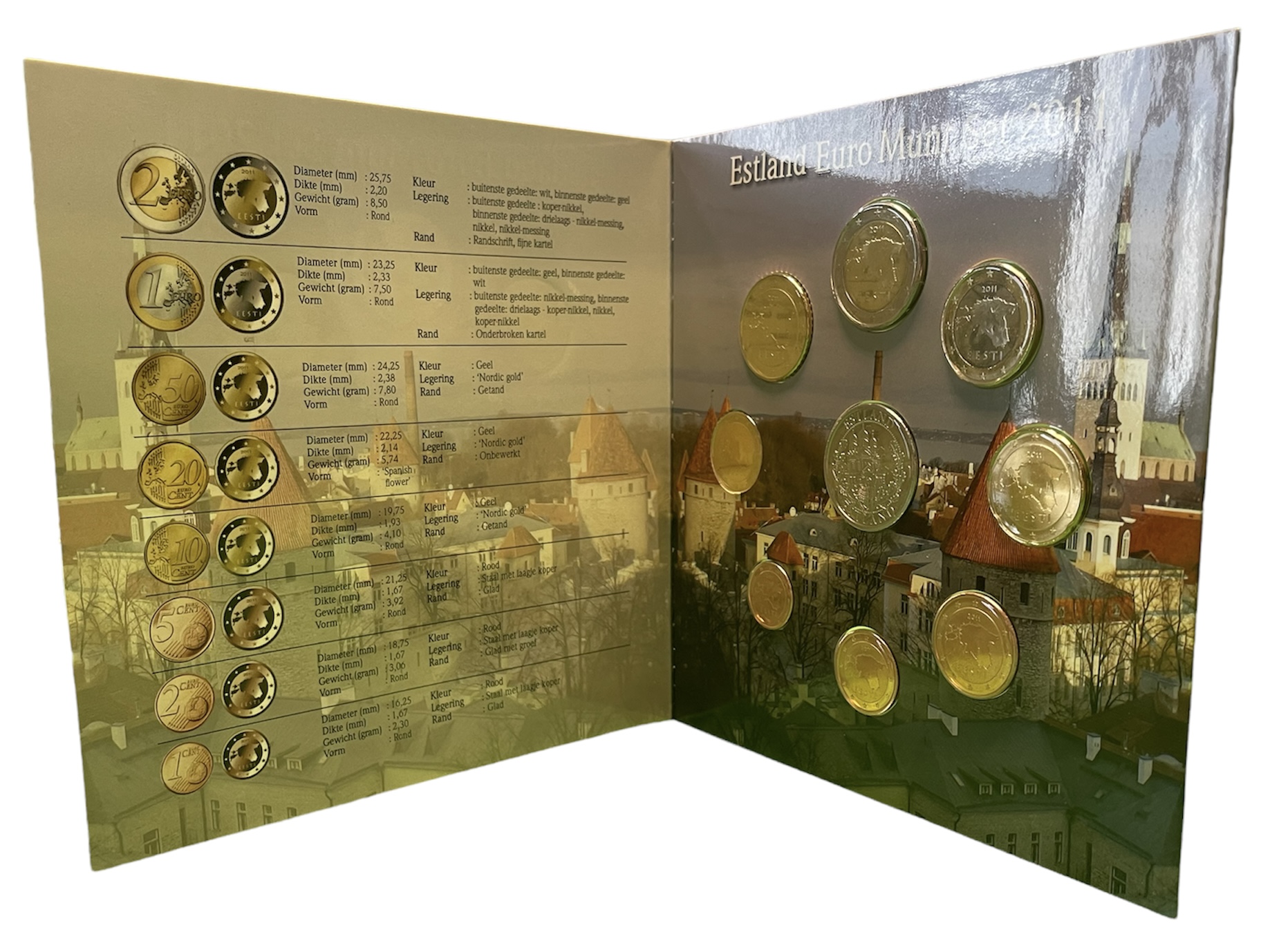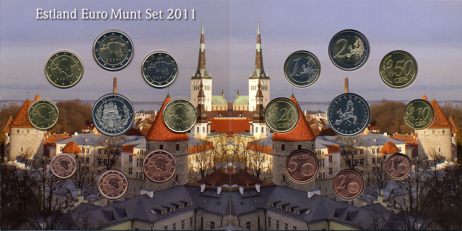 Эстония набор из 8 евромонет + жетон 2011 в красочном буклете биметалл UNC 1-6-1-12
