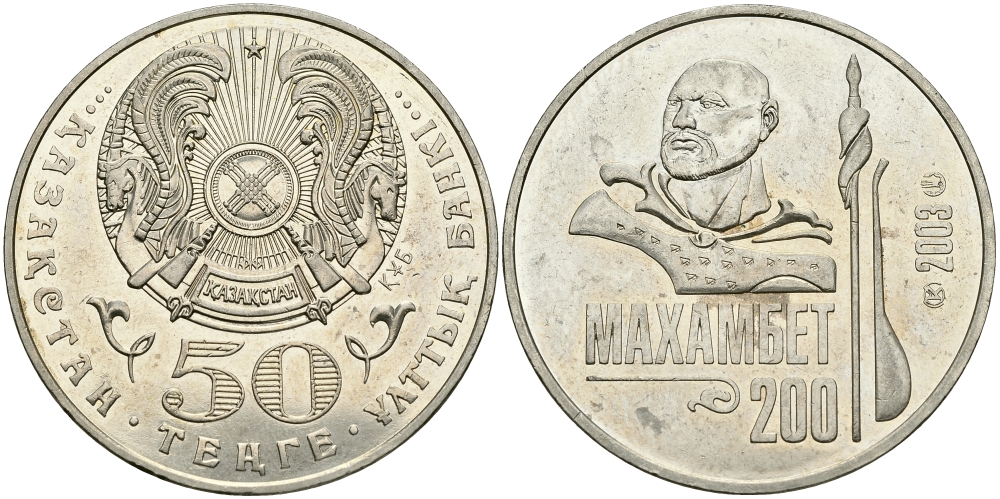 КАЗАХСТАН 50 ТЕНГЕ 2003 200 ЛЕТ СО ДНЯ РОЖДЕНИЯ МАХАМБЕТА УТЕМИСОВА KM 70 медно-никель 00-00