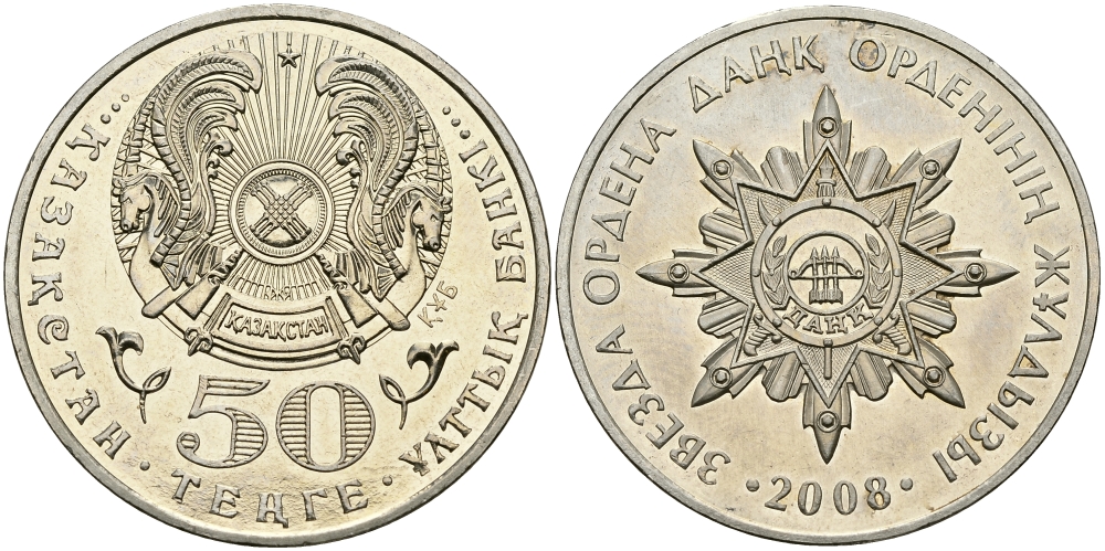 КАЗАХСТАН 50 ТЕНГЕ 2008 СЕРИЯ ГОСУДАРСТВЕННЫЕ НАГРАДЫ, ОРДЕН АЙБЫН KM 171 медно-никель 00-00