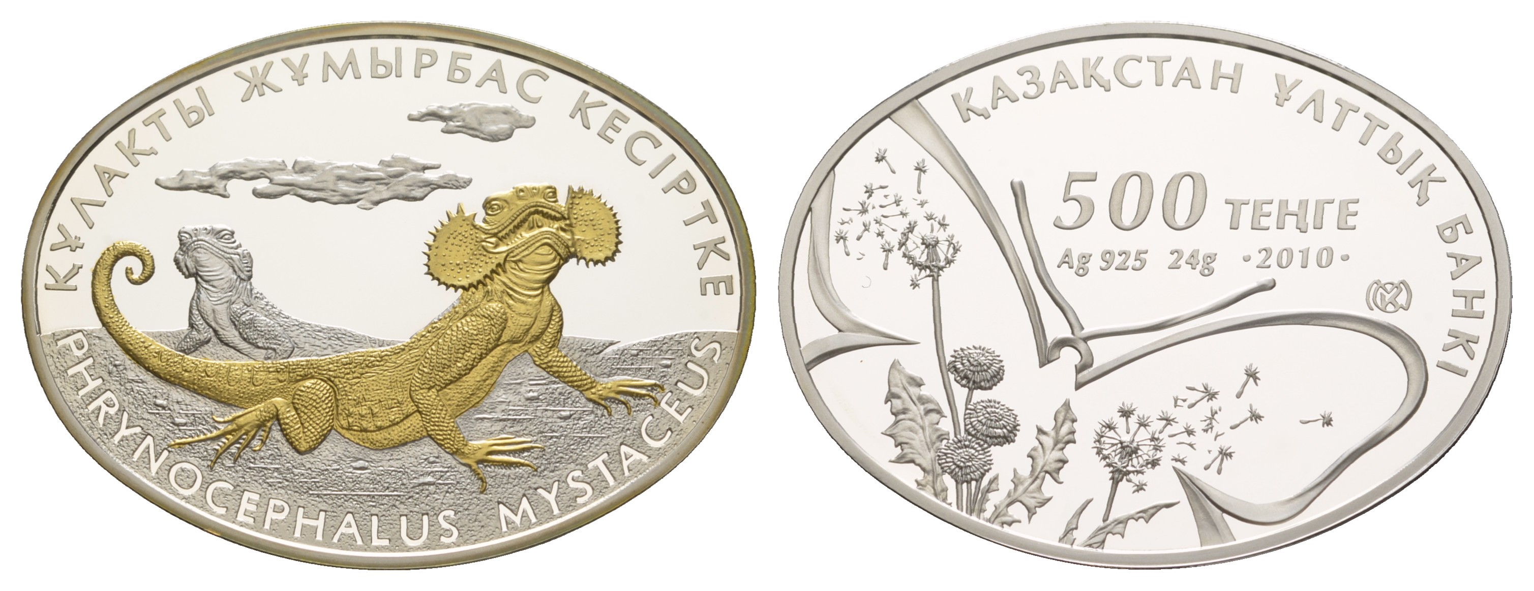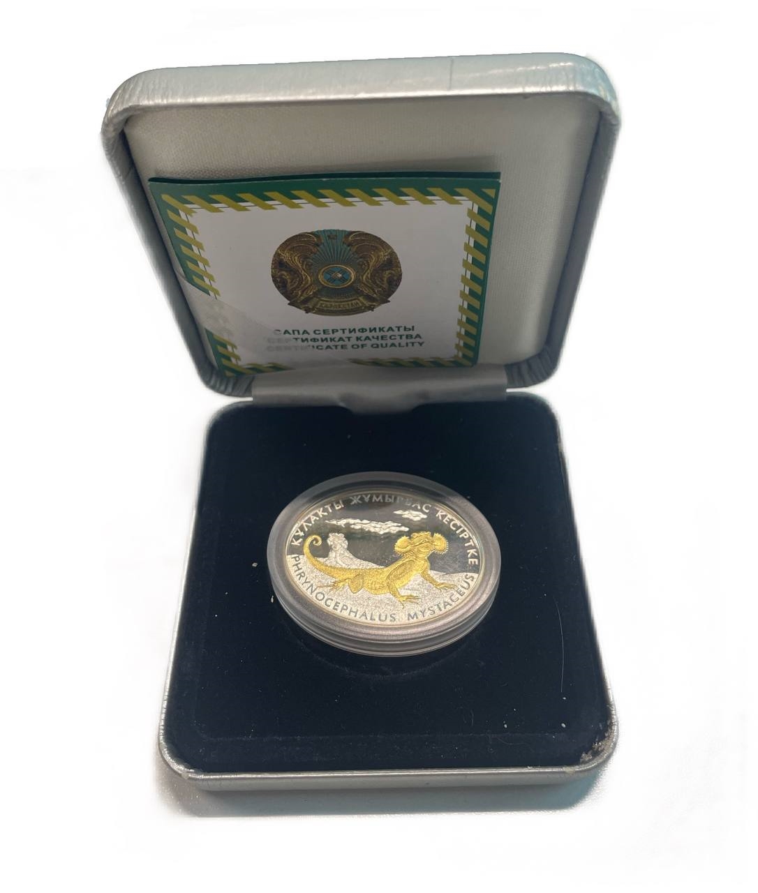 Казахстан 500 тенге 2010 серия Красная книга, ушастая круглоголовка, коробка, сертификат KM NEW серебро PROOF 3-6-5-28