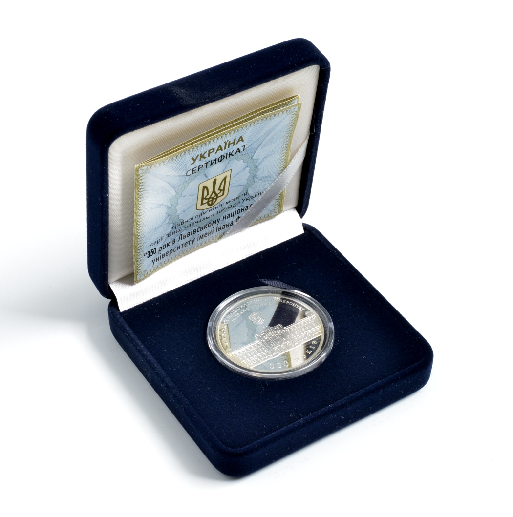 Украина 5 гривен 2011 350 лет Университету Ивана Франко, в оригинальной коробке, с сертификатом, тираж 7000 экз. серебро PROOF 4-5-3-07