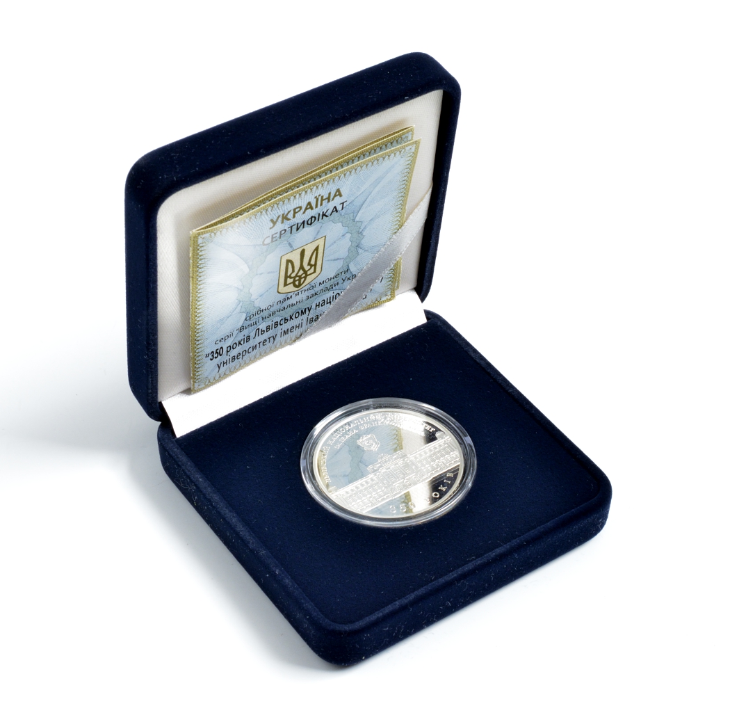 Украина 5 гривен 2011 350 лет Университету Ивана Франко, в оригинальной коробке, сертификат, тираж 7000 экз. серебро PROOF 4-5-3-06