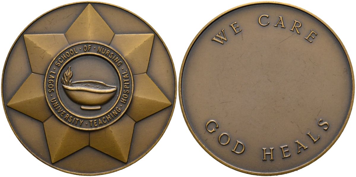 Нигерия медаль ND "Мы заботимся - Бог исцеляет", университетская больница в Лагосе, диаметр 45 мм. бронза 1095-8-34