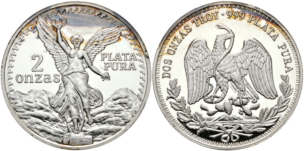 Мексика 2 унции ND богиня победы Ника, с венком, диаметр 48 мм., вес 2 тройские унции серебро PROOF 1071-7-32