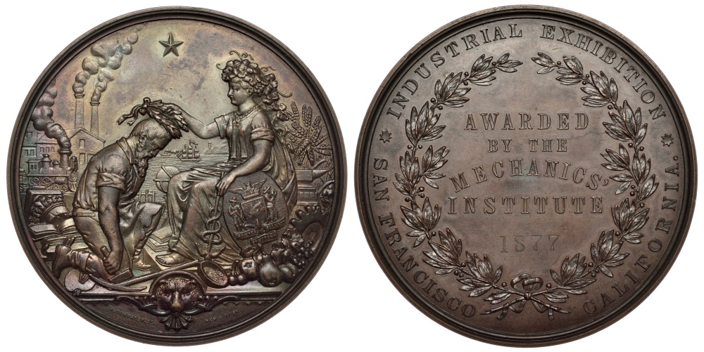 США медаль 1877 промышленная выставка в Сан-Франциско, 76,1 мм бронза 10-003-18