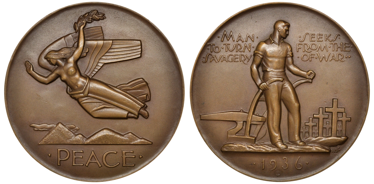 США медаль 1936 мир, крестьянин, эротика, 68,1 мм, 160,4 гр бронза 8-1-07-07