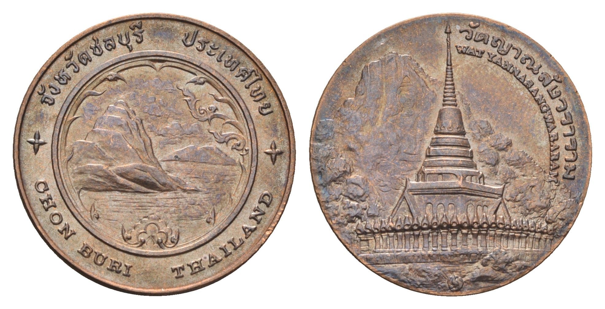 Таиланд медаль из серии провинции таиланд - Чонбури XX век божество Чао Мэй Сам Мук, Храм "Чеди Луанг", диаметр 25 мм, вес 8,1 гр медь UNC 4663-1127