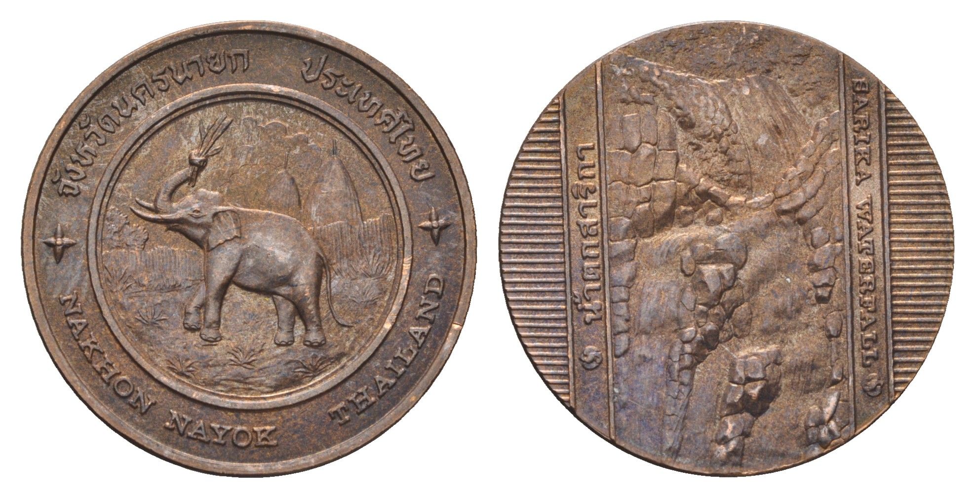 Таиланд медаль из серии провинции таиланд - Накхон Найок XX век слон с поднятым хоботом, водопад Сарика, диаметр 25 мм, вес 8,4 гр медь UNC 4663-1126