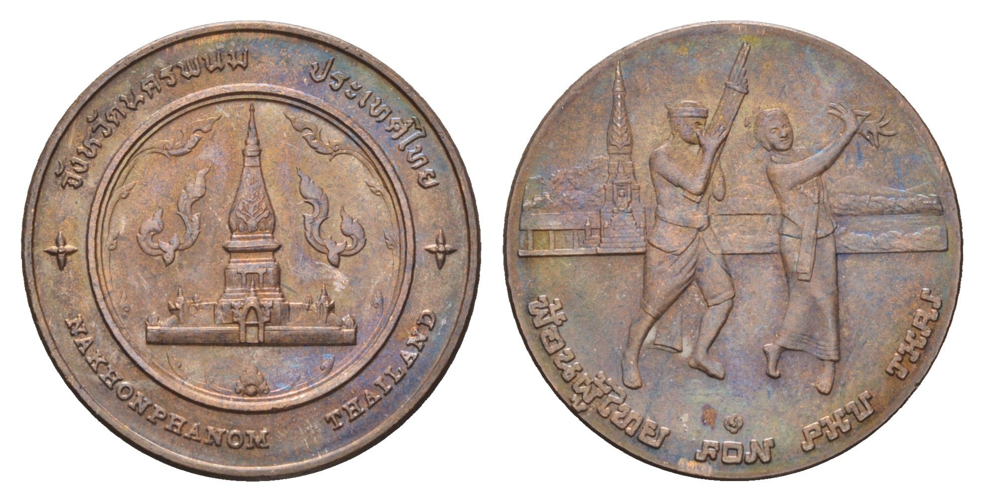 Таиланд медаль из серии провинции таиланд - Накхон-Пханом XX век пагода Тхат Пханом, Культурный фестиваль с тростниковыми трубами и танцами в тайском стиле, диаметр 25 мм, вес 8,9 гр медь UNC 4663-1114