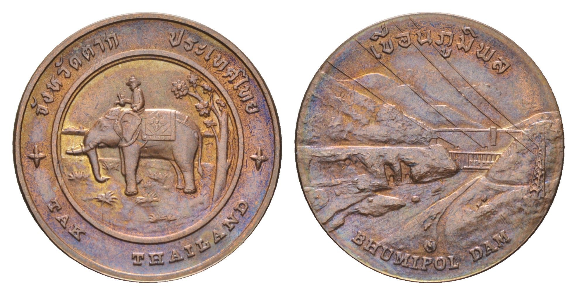 Таиланд медаль из серии провинции таиланд - Так XX век король Наресуан на королевском слоне, плотина Бхумибола, диаметр 25 мм, вес 8,2 гр медь UNC 4663-1231