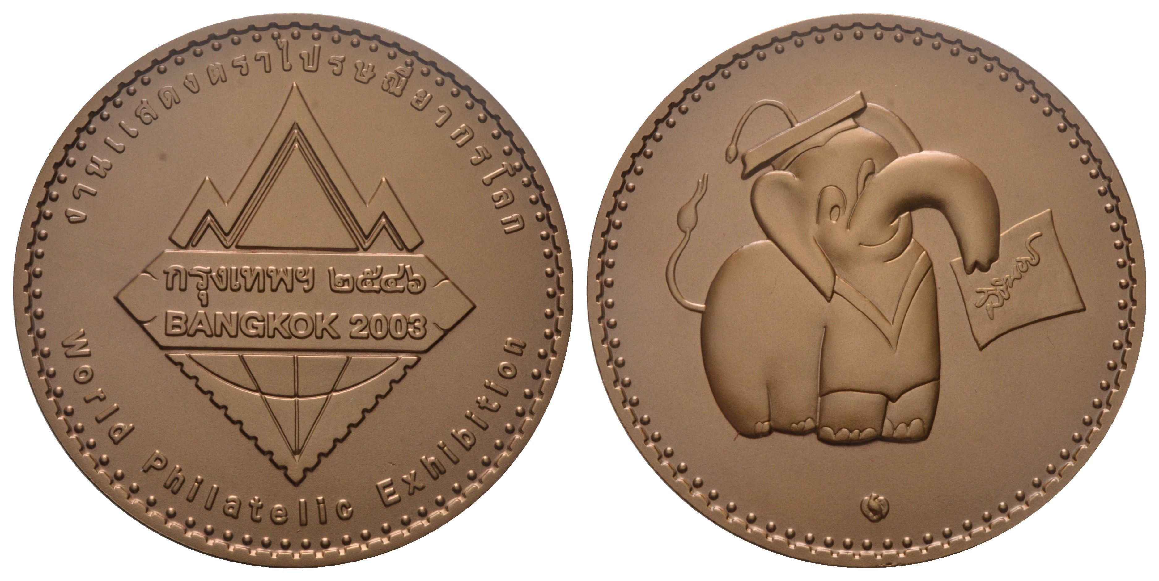 Таиланд медаль "Всемирная филателистическая выставка в Бангкоке" 2003 в оригинальной коробке, слон, диаметр 69,5 мм, вес 152,4 гр 8-2-05-34