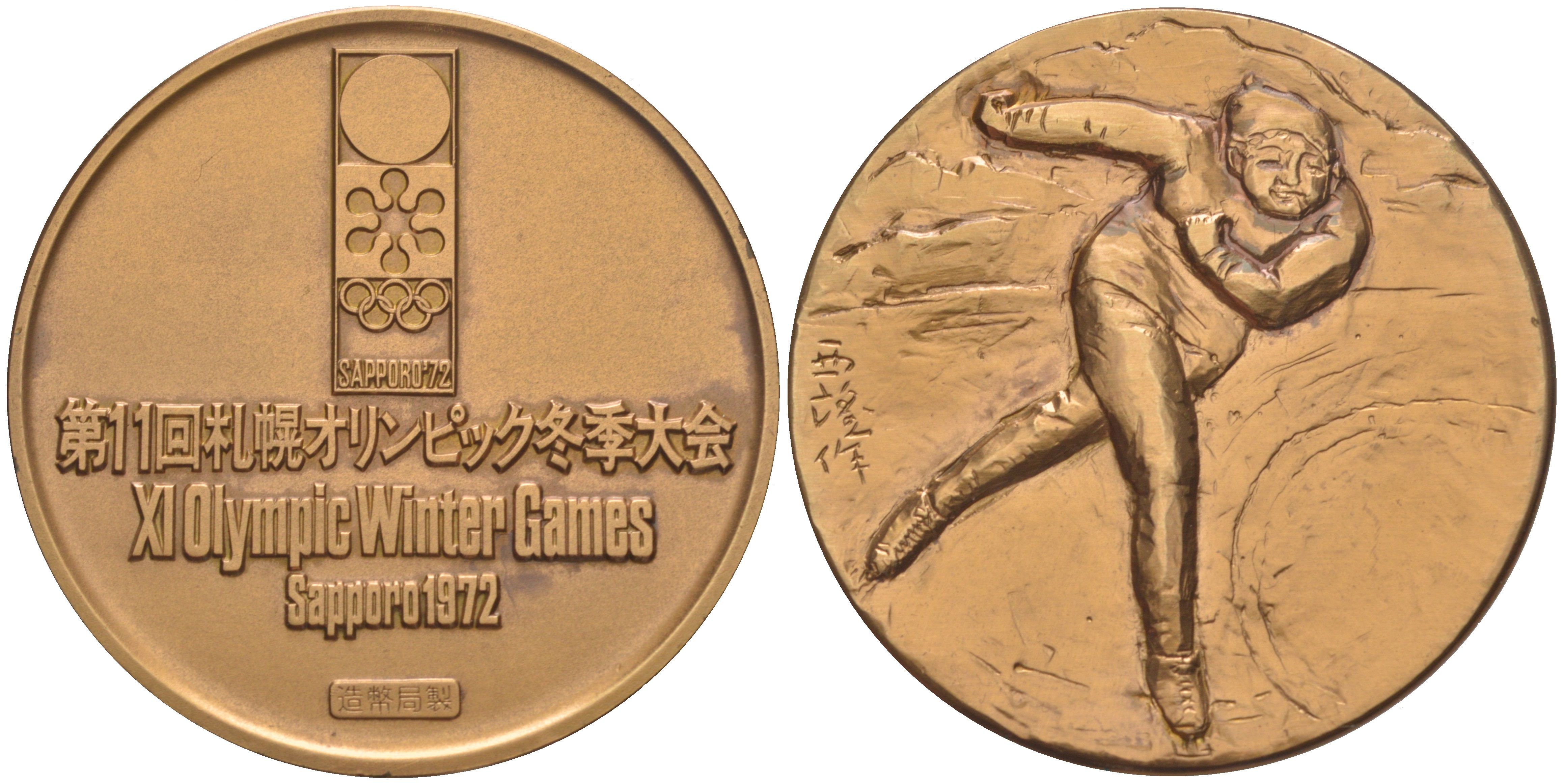 Япония медаль "Олимпиада в Саппоро" 1972 в оригинальной упаковке, диаметр 50 мм, вес 91,5 гр бронза 8-1-03-04