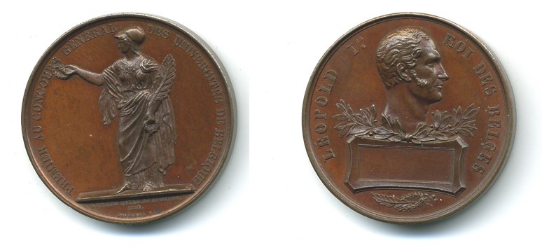 БЕЛЬГИЯ МЕДАЛЬ 1841 ПРЕМИЯ УНИВЕРСИТЕТА БЕЛЬГИИ, 38,9 мм Wurzb. 5086 бронза UNC 1079-5-12