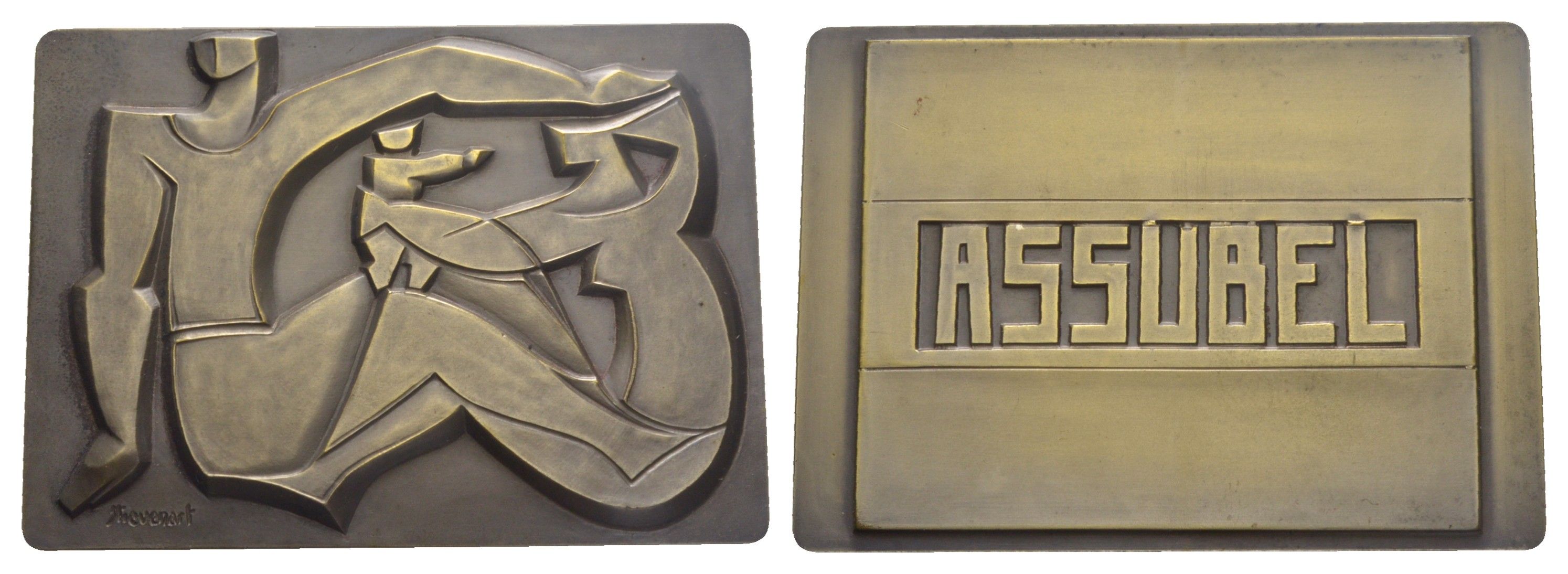 ------Бельгия плакетка страховой компании "Assubel" XX век размеры 64,5x90,5 мм, вес 252,8 гр бронза плакированная серебром 3-5-3-23