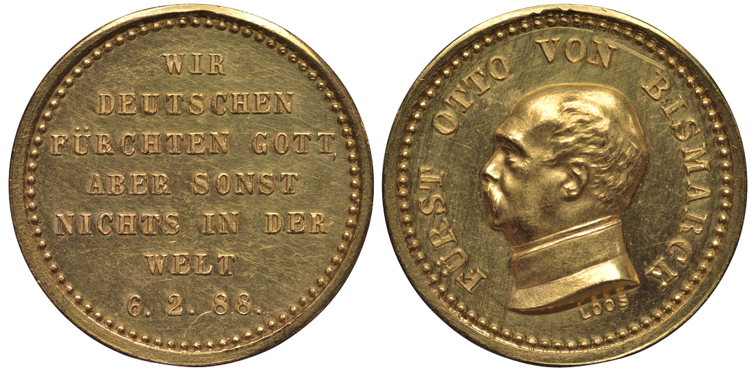 Германия медаль 1888 канцлер Бисмарк, R золото 00-808-14