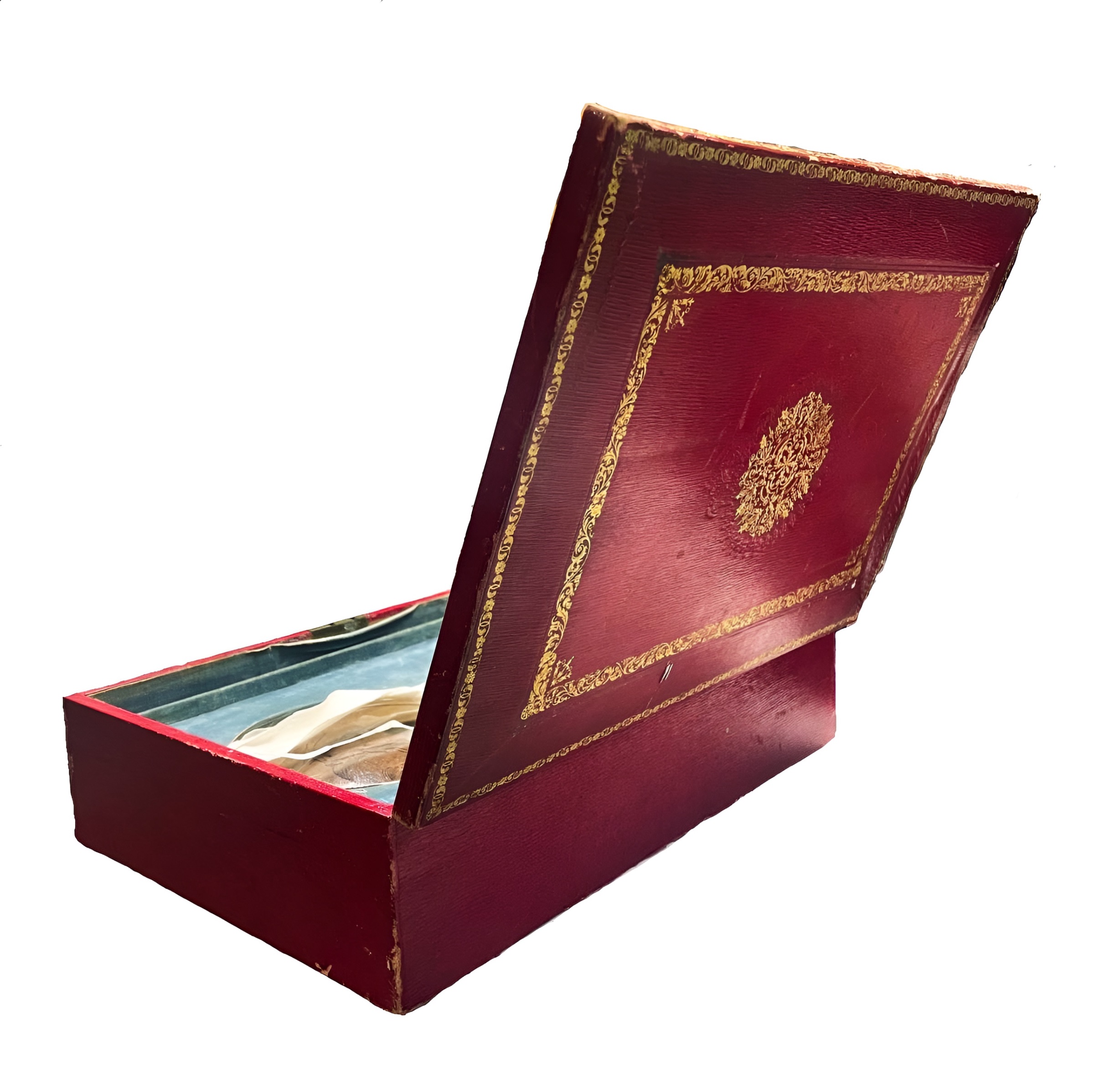 Все медали находятся в оригинальной деревянной шкатулке бордового цвета с тиснениями и узорами выполненными золотым красителем. Внутри шкатулки располагаются три яруса из бархатных полочек. Каждый ярус представляет собой плоскую подставку с выемками под медали.