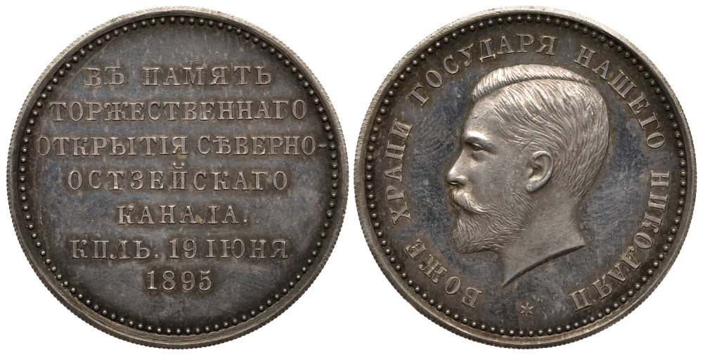 Россия медаль 1895 открытие северного Остзейского канала, 35 мм Дьяков 1187.1 (R3) серебро aPROOF 10-009-30