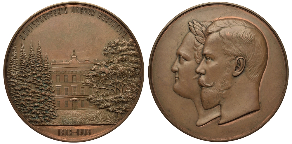 Россия медаль 1903 в память 100-летие Лесного института в Санкт-Петербурге Дьяков 1383.1 (R1) бронза 10-003-22