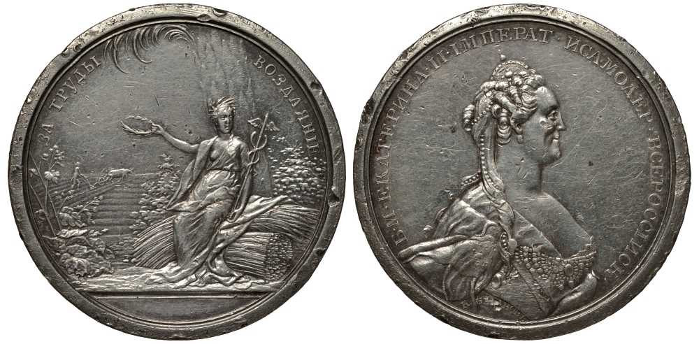 Россия медаль XIX век Вольное экономическое общество, 44,6 мм, 85,82 гр, толщина 6,1 мм. Пьефорт? Дьяков к 142.6 R1 серебро 10-014-02
