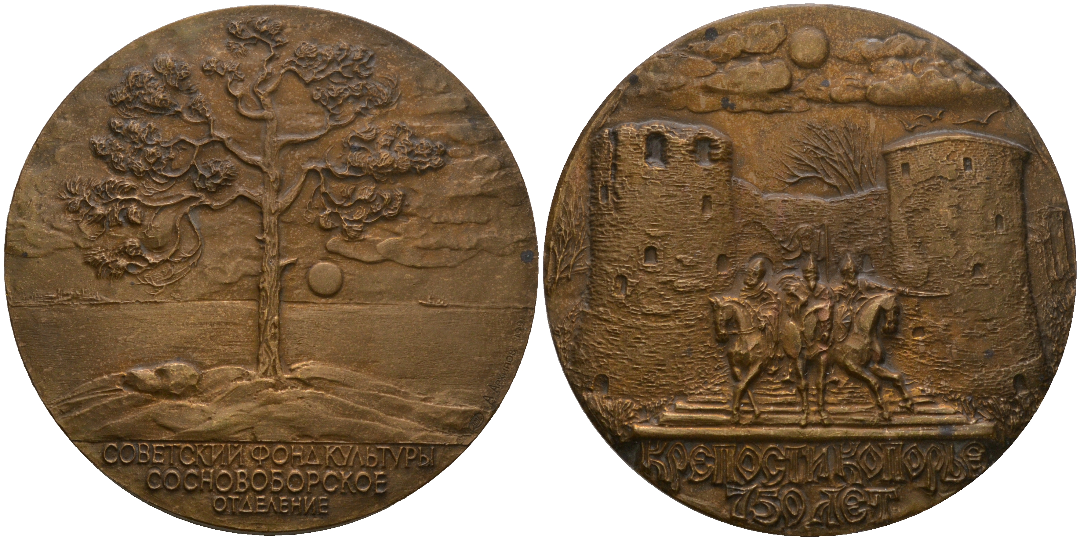 Россия медаль 1992 750 лет крепости Копорье Советский фонд культуры Соснововыборское, ЛМД, 60,0 мм, 137,0 гр томпак UNC 8-1-04-03
