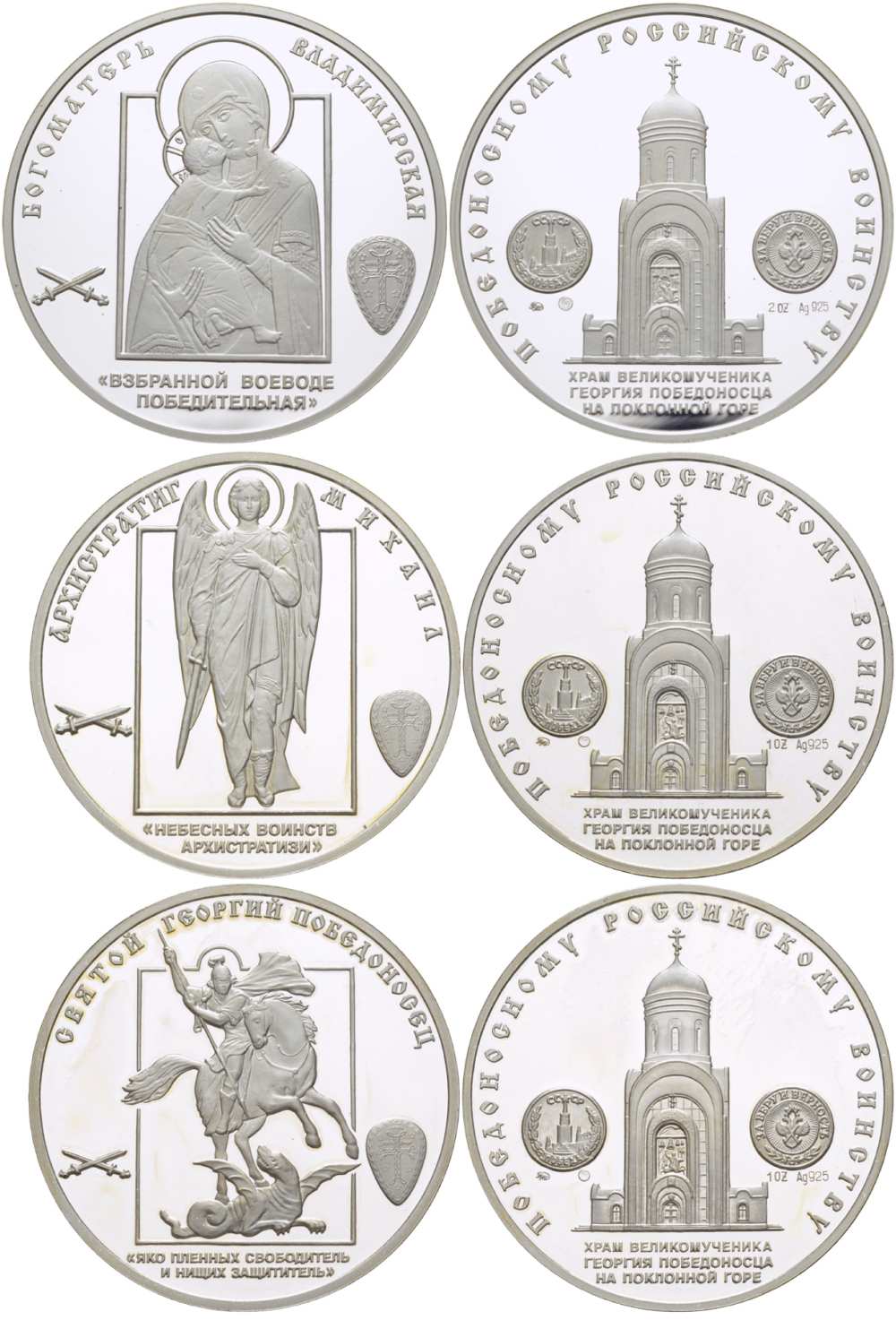РОССИЯ НАБОР ИЗ ТРЁХ МЕДАЛЕЙ ПОБЕДОНОСНОМУ РОССИЙСКОМУ ВОИНСТВУ, АРХИСТРАТИГ МИХАИЛ (НЕБЕСНЫХ ВОИНСТВ АРХИСТРАТИЗИ), СВЯТОЙ ГЕОРГИЙ ПОБЕДОНОСЕЦ (ЯКО ПЛЕННЫХ ОСВОБОДИТЕЛЬ И НИЩИХ ЗАЩИТИТЕЛЬ), БОГОМАТЕРЬ ВЛАДИМИРСКАЯ (ВЗБРАННОЙ ВОЕВОДЕ ПОБЕДИТЕЛЬНАЯ), 1 УНЦ