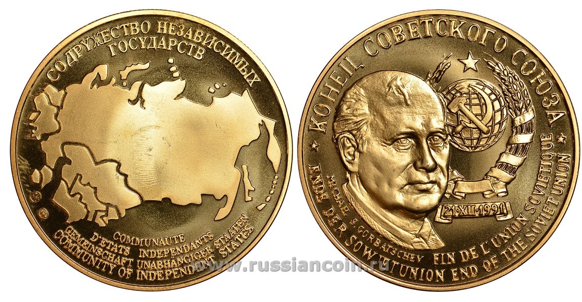 ---Содружество Независимых Государств медаль 1992 конец Советского Союза, дата, герб, Михаил Горбачев, вес около 26 гр, диаметр 40 мм, гурт рубчатый нордик голд 5-3-1-106НовинкиАнтичность и раннее СредневековьеМонеты - ГерманияМонеты - ЕвропаМонеты - Австралия и ОкеанияМонеты - АзияМонеты - АмерикаМонеты - АфрикаМонеты - Россия, СССР, страны СНГ и БалтииБанкнотыАксессуары, ЛитератураОткрытки, карточкиАкции, облигацииЖетоны, Медали, ЗнакиМаркиКартины, декоративно-прикладное искусство