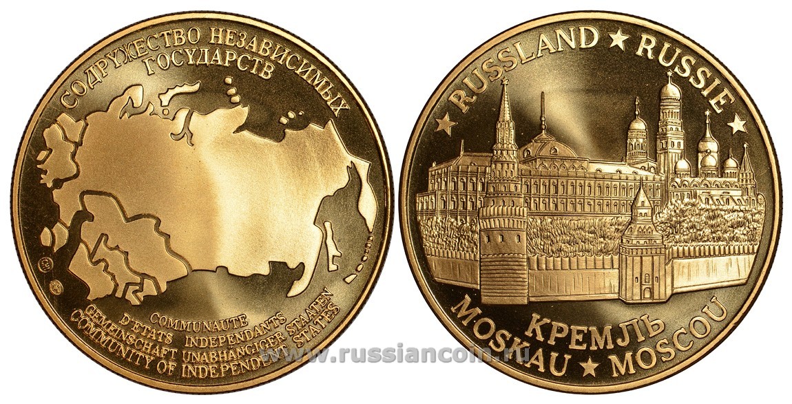Содружество Независимых Государств медаль 1992 Россия, Москва, Московский Кремль, вес около 26 гр, диаметр 40 мм, гурт рубчатый нордик голд 5-3-1-117