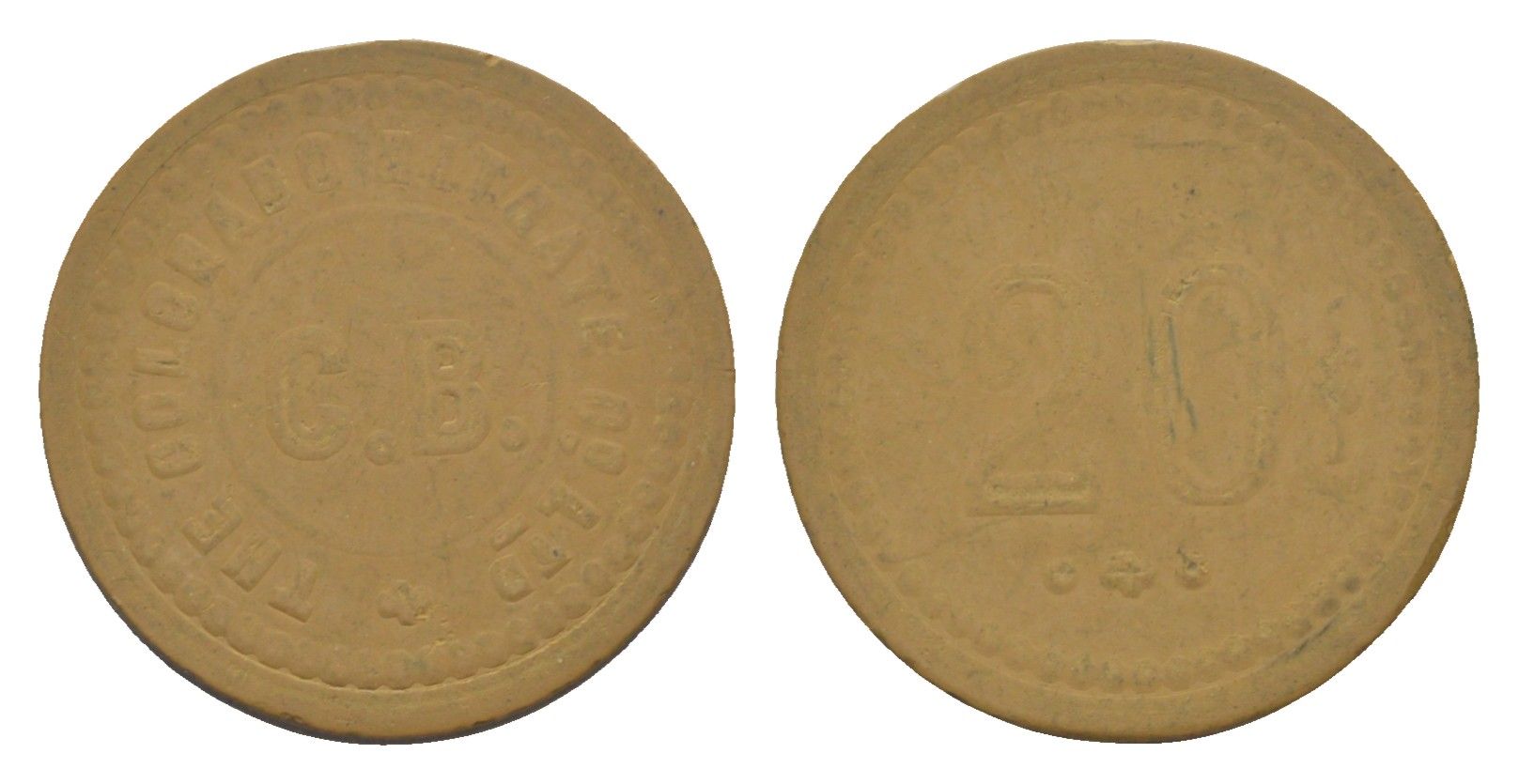 -----Чили, Кармен Баджо (Carmen Bajo), Посо-Альмонте шахтерский жетон с Селитряного рудника для покупки в местных магазинах, номиналом в 20 сентаво 1880-1920 диаметр 26 мм, вес 1,87 гр Espinosa 65.6 эбонит (охра) 1094-3-71