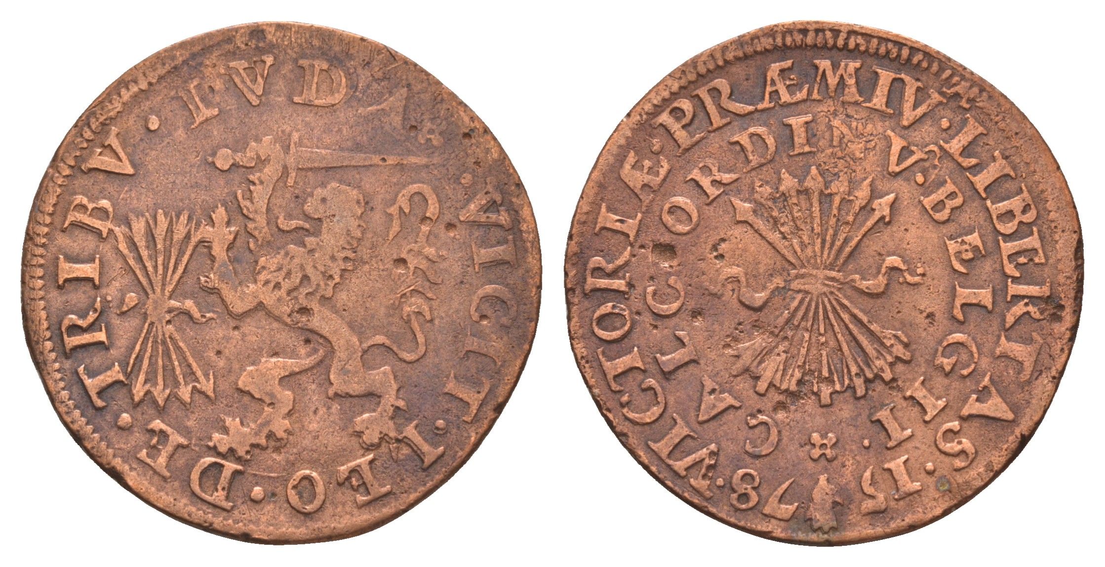 Бельгия cчетный жетон - Вторая Брюссельская уния 1578 диаметр 28 мм, вес 4,74 гр медь 1520-824