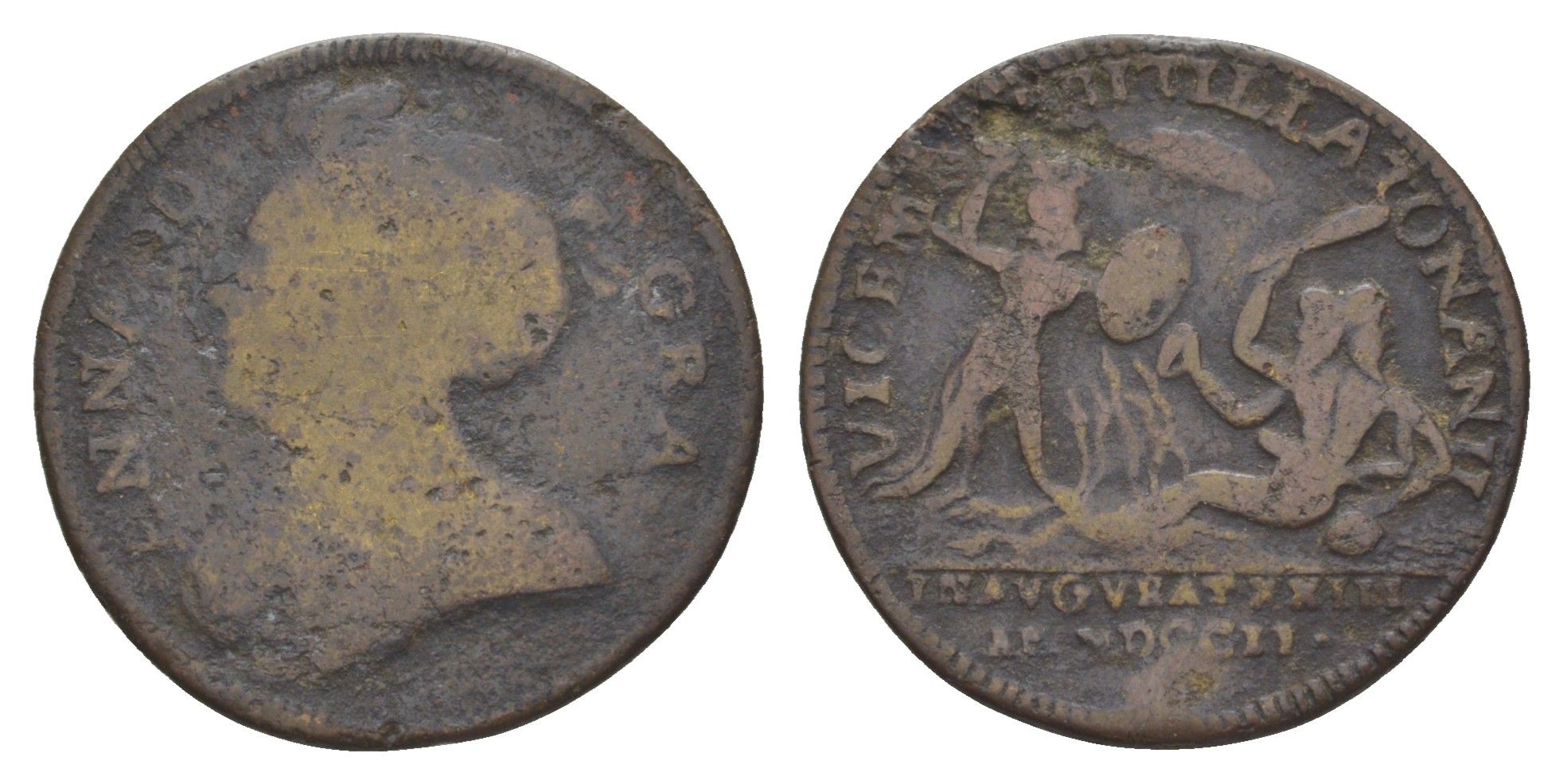 -----Англия жетон в честь восшествие Анна Стюарт на престол Англии, Шотландии и Ирландии 1702 гравер Дж. Крокер, диаметр 24 мм, вес 4,4 гр медь 1526-714
