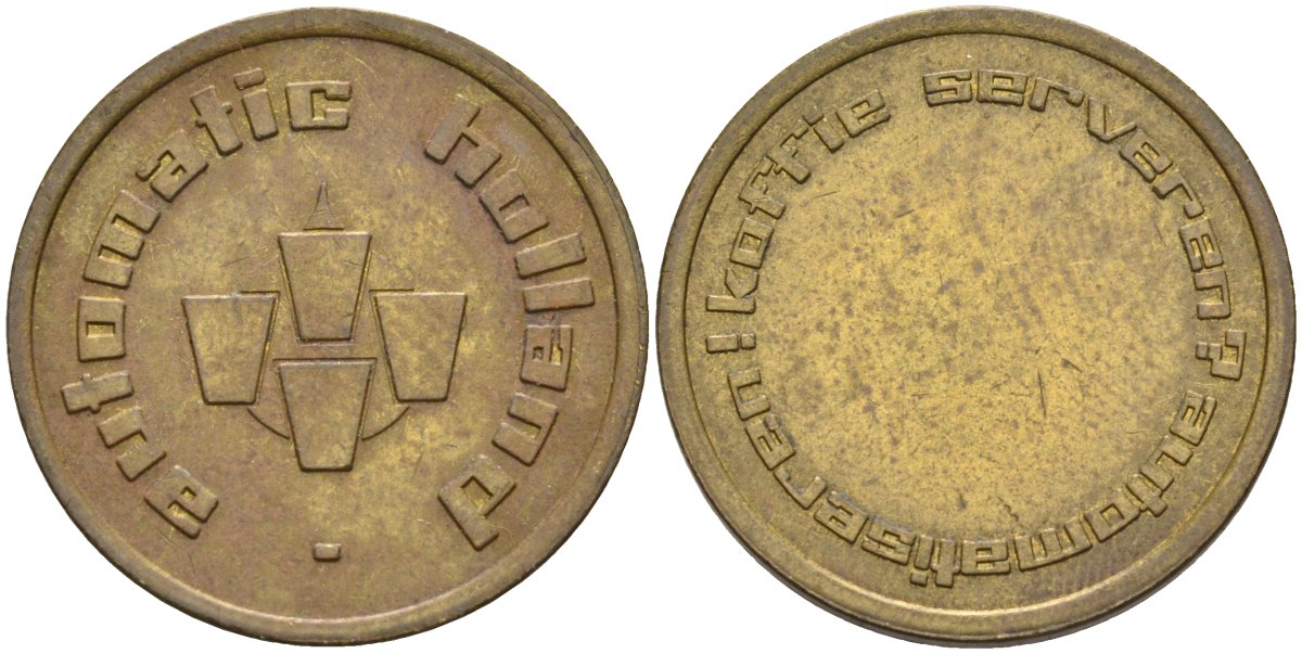 Нидерланды кофейный жетон ND AUTOMATIC HOLLAND, COFFE SERVEREN? AUTOMATISEREN, диаметр 22 мм. латунь 4584-846