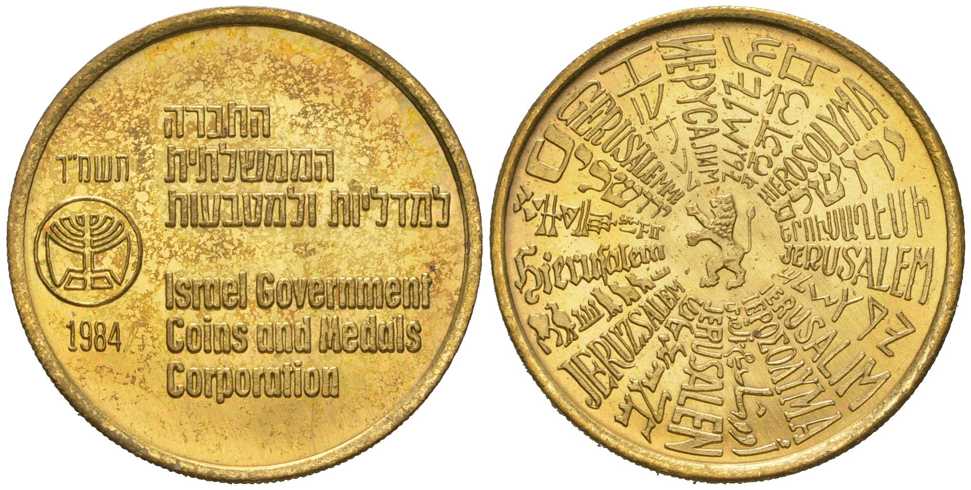 -----Израиль жетон монетного двора 1984 Иерусалимский символ - Неистовый лев, диаметр 25,4 мм, вес 5,6 гр латунь UNC 4619-446
